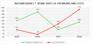 The premiums and costs of intermediaries (agencies + brokers) between 2014 and 2018;